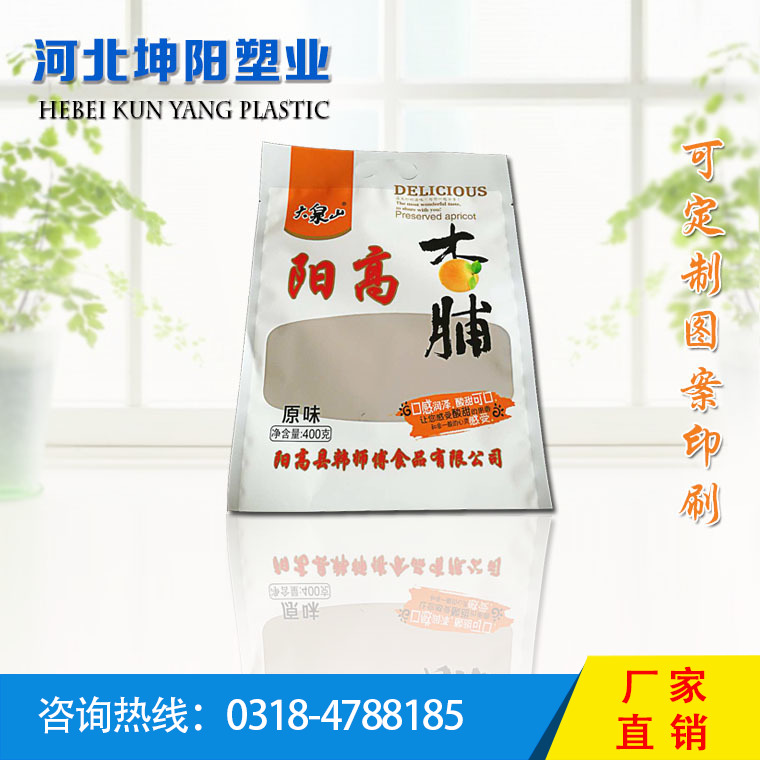 ? ? ? ? 河北坤陽塑業有限公司是一家集定制,設計,印刷于一體的包裝袋生產企業,本公司擁有十色印刷機、高速復合機、制袋機等設備,專業生產食品袋、真空袋、拉鏈自立袋、鋁箔袋、火鍋調料袋、奶食品袋、醬菜袋、五邊封袋、高溫蒸煮袋、UV印刷復合袋、易揭封口蓋膜及各種包裝復合膜、超市專用手提袋、手撕袋、托盒等。公司歡迎各界人士前來咨詢洽談。